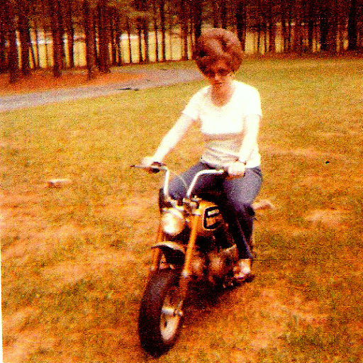That's me riding my older brother's Honda 50. Mind you, it's back in the 70's when I had hair. That Honda was the first "motorcycle" that I ever rode and once I was old enough, and my parents found a helmet that would fit around my hair, I rode that thing into the ground. I loved it. Motorized exploration. I have no idea why I look like my Aunt Bobbie in the picture, though. Very strange indeed.